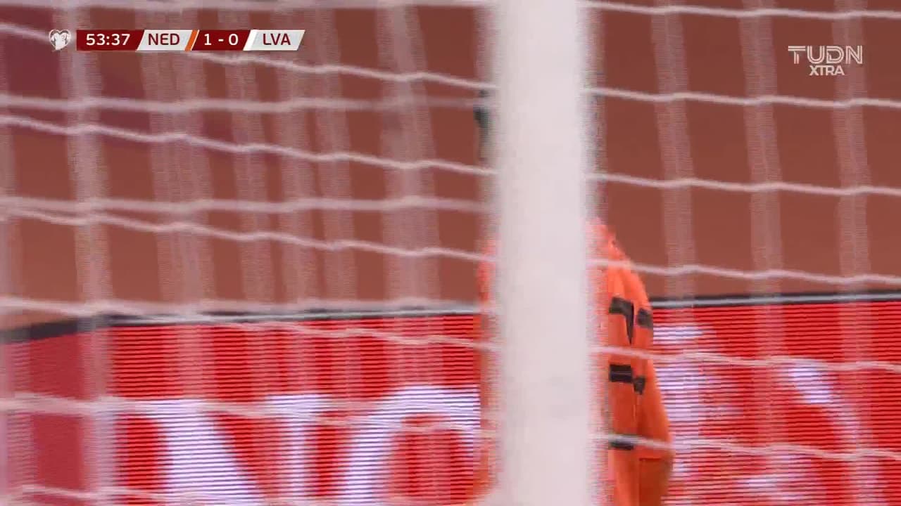 Tiro atajado raso al centro del arco. Luuk de Jong (Holanda) Disparo con la derecha desde muy cerca. Asistencia de Matthijs de Ligt.