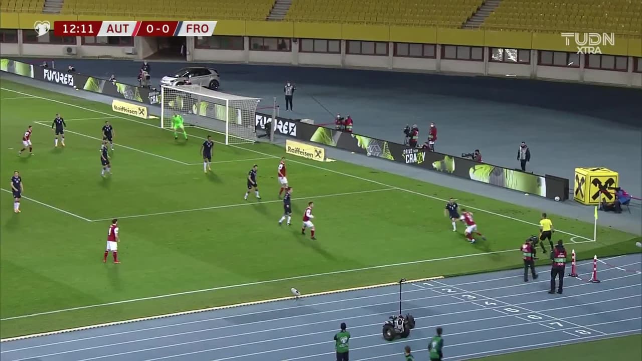 Tiro atajado por abajo a la izquierda. Marcel Sabitzer (Austria) Disparo con la derecha desde el lado derecho dentro del área. Asistencia de Sasa Kalajdzic.