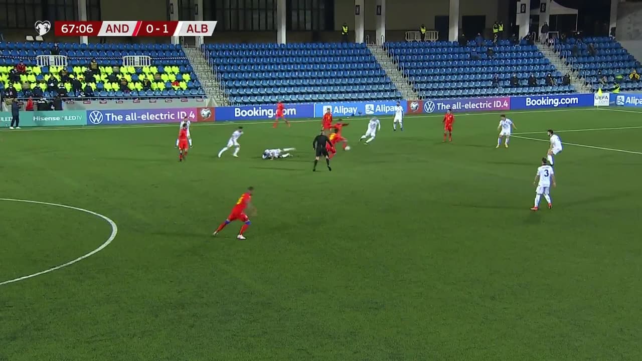 Tiro atajado raso al centro del arco. Marcio Vasconcelos (Andorra) Disparo con la derecha desde fuera del área.
