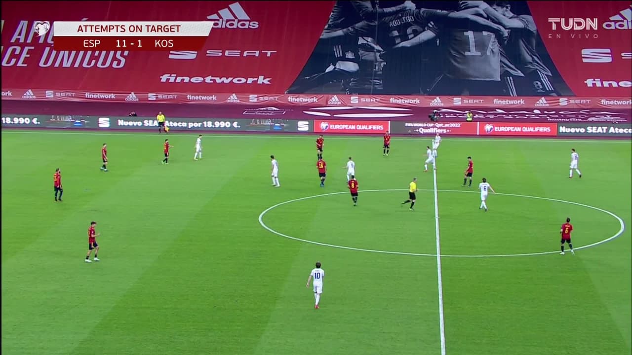 Tiro atajado. Marcos Llorente (España) Disparo con la derecha desde el centro del área.