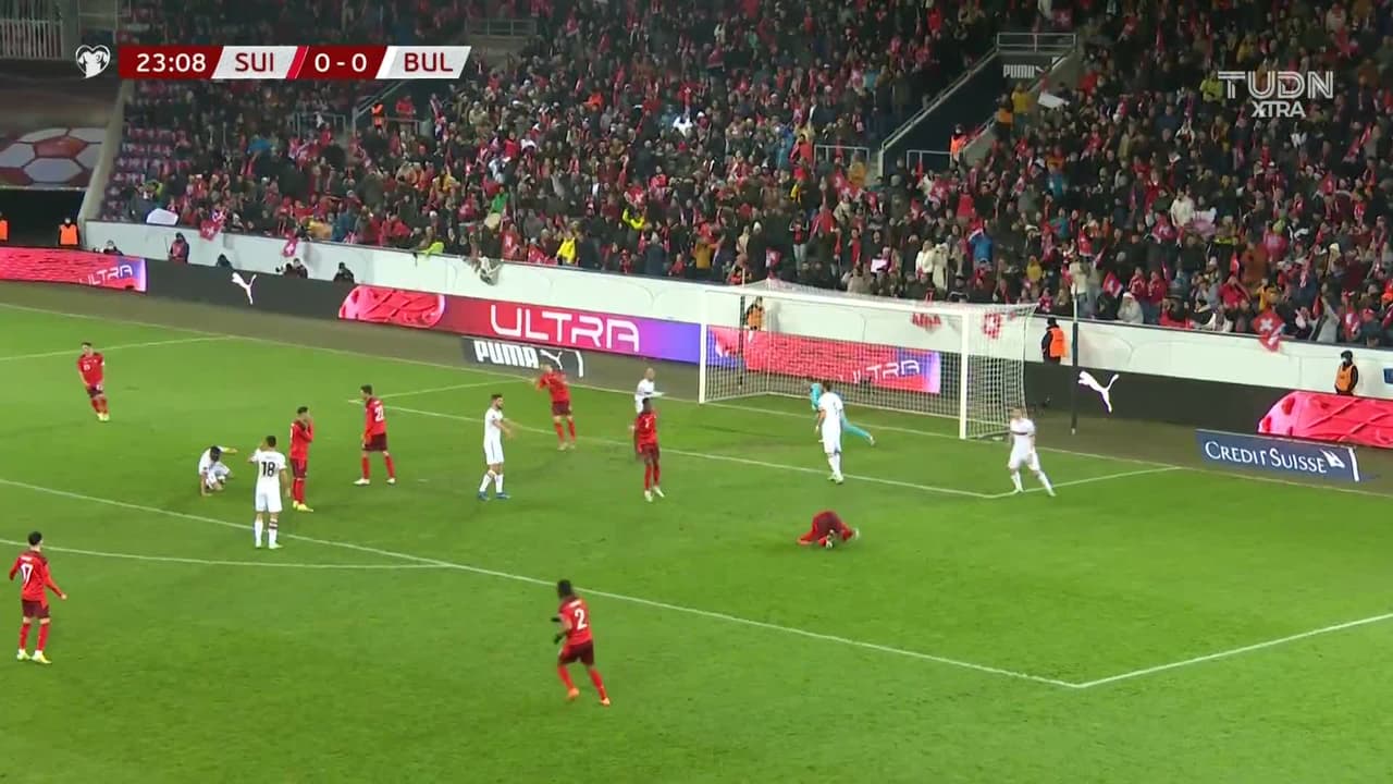 Tiro atajado Por arriba en el centro del arco. Mario Gavranovic (Suiza) Disparo con la derecha desde el centro del área. Asistencia de Noah Okafor.