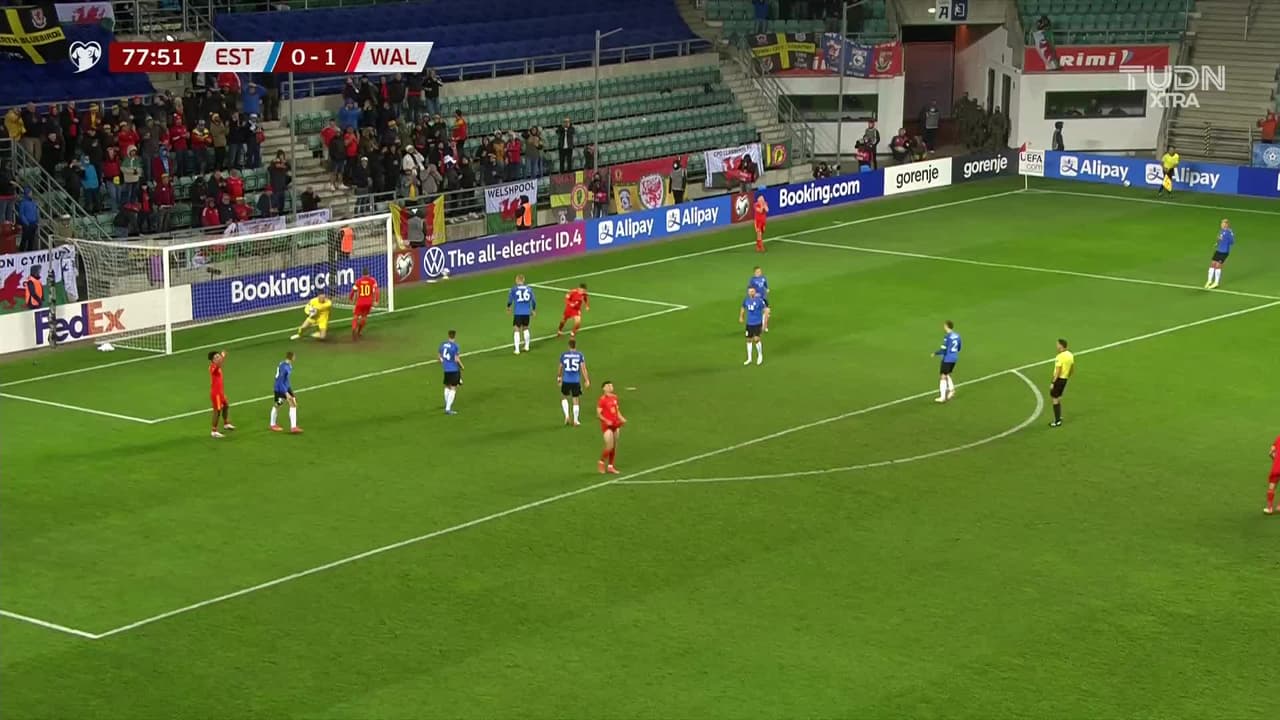 Tiro atajado. Mark Harris (Gales) Disparo con la derecha desde el centro del área.