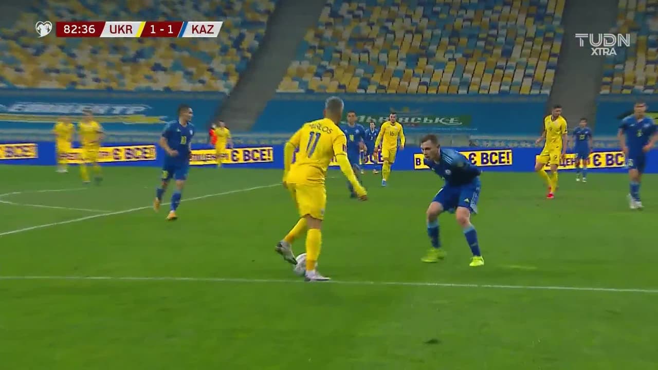 Tiro atajado por abajo a la izquierda. Marlos (Ucrania) zurdazo desde fuera del área. Asistencia de Bogdan Mykhaylichenko con un centro al área.