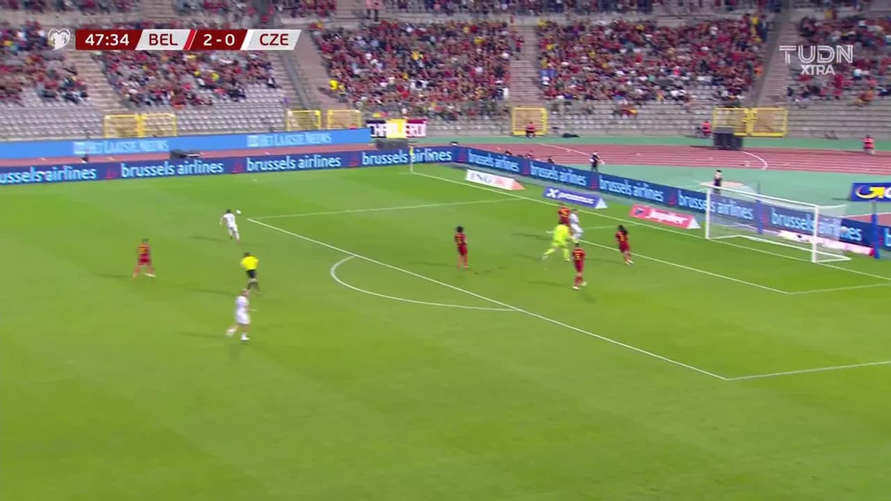 Tiro atajado. Matej Vydra (República Checa) Disparo con la derecha desde el centro del área.