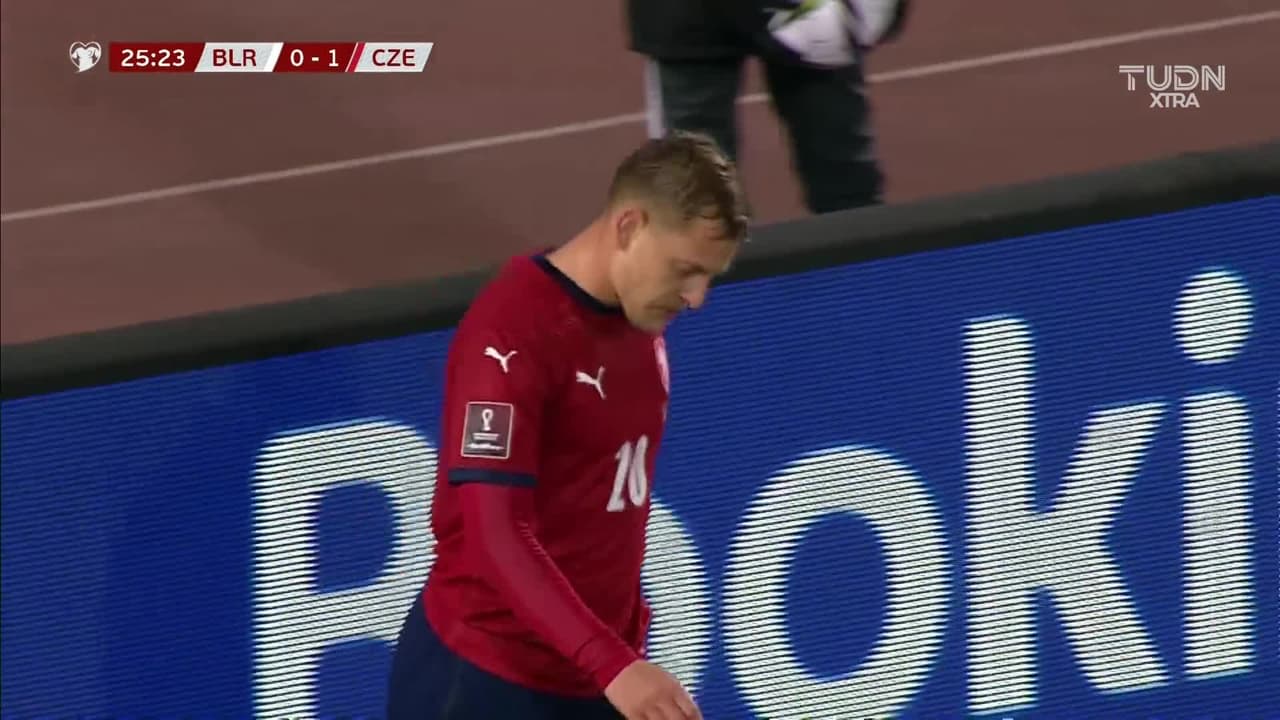 Tiro atajado raso al centro del arco. Matej Vydra (República Checa) zurdazo a quemarropa desde el lado izquierdo. Asistencia de Tomas Soucek pase largo.