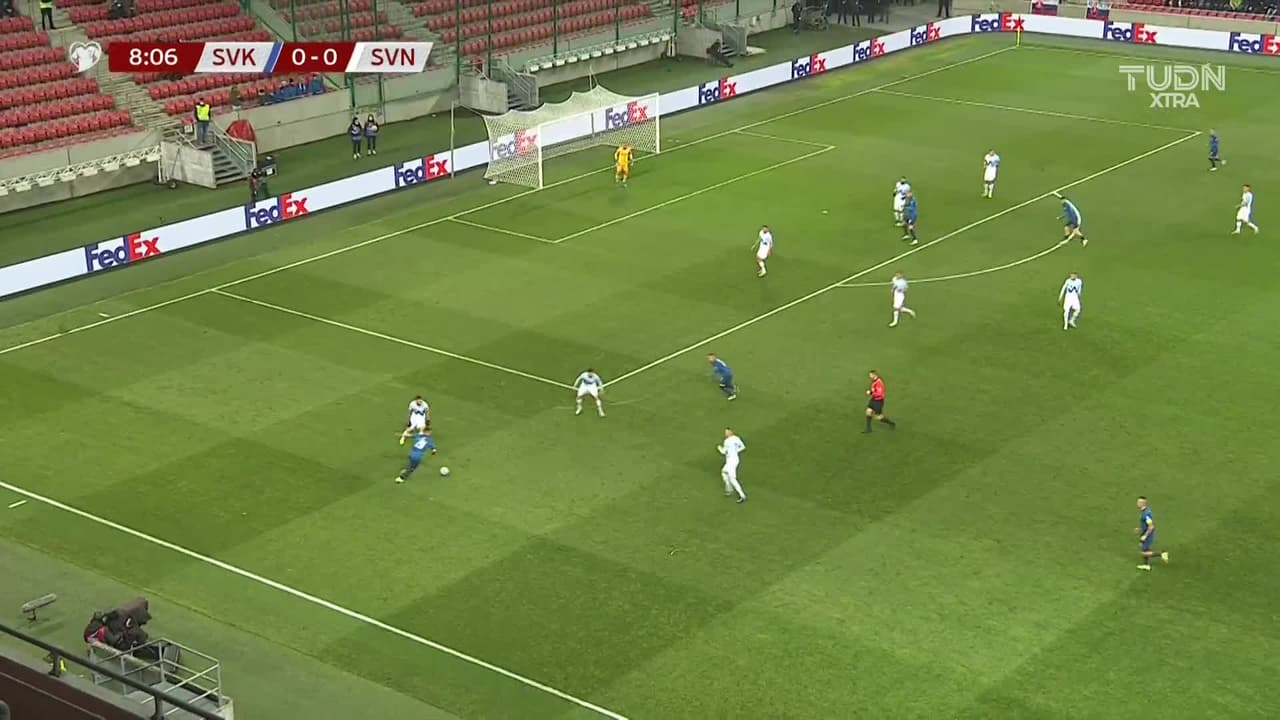 Tiro atajado raso al centro del arco. Matús Bero (Eslovaquia) Disparo con la derecha desde fuera del área. Asistencia de Róbert Mak.