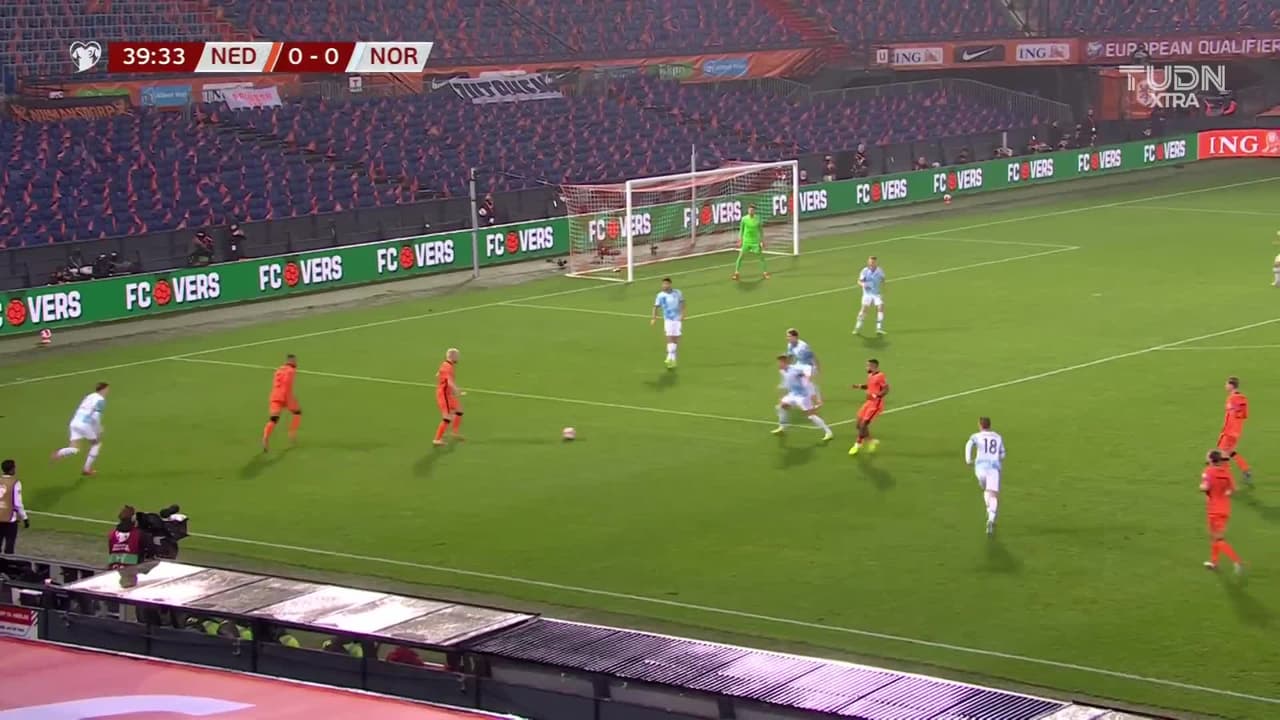 ¡TIRO ATAJADO! disparo por Memphis Depay.