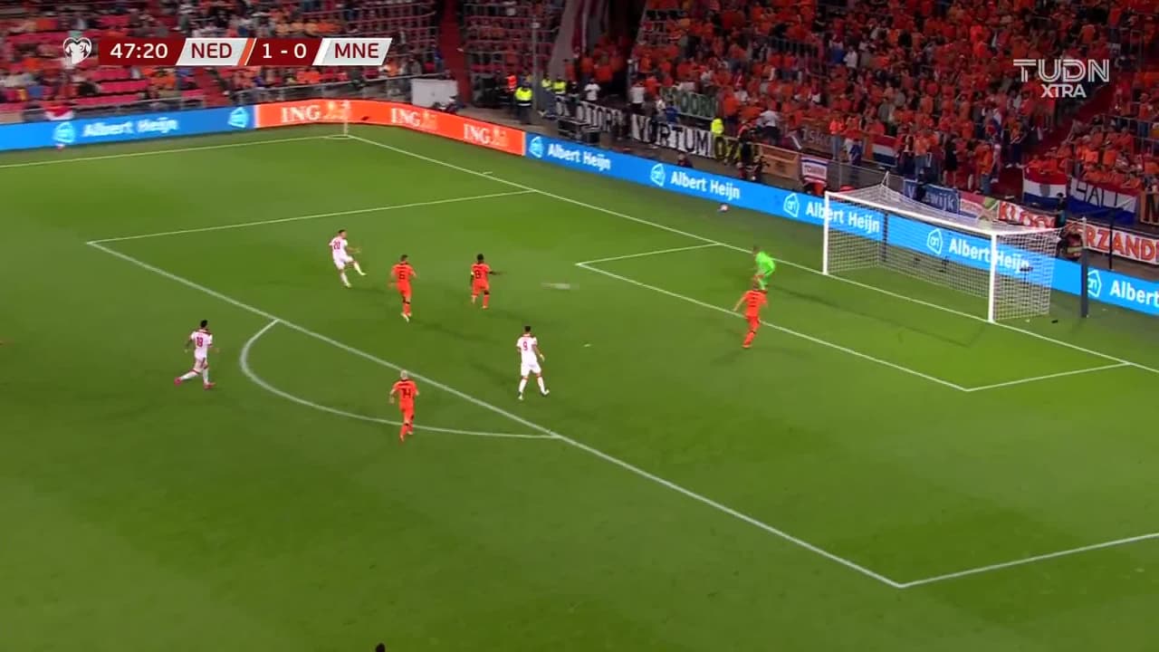 Tiro atajado por abajo a la izquierda. Milutin Osmajic (Montenegro) zurdazo desde el centro del área. Asistencia de Stefan Mugosa.