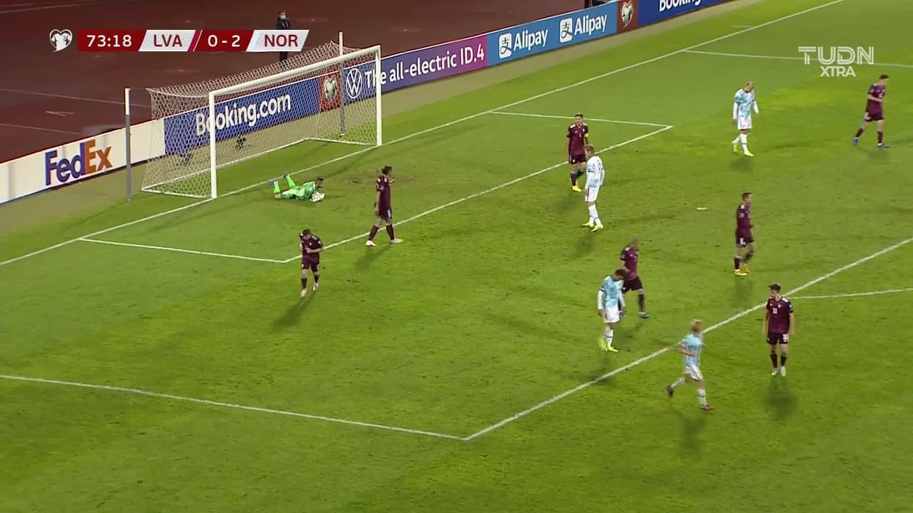 Tiro atajado raso al centro del arco. Mohamed Elyounoussi (Noruega) Disparo con la derecha desde el centro del área.