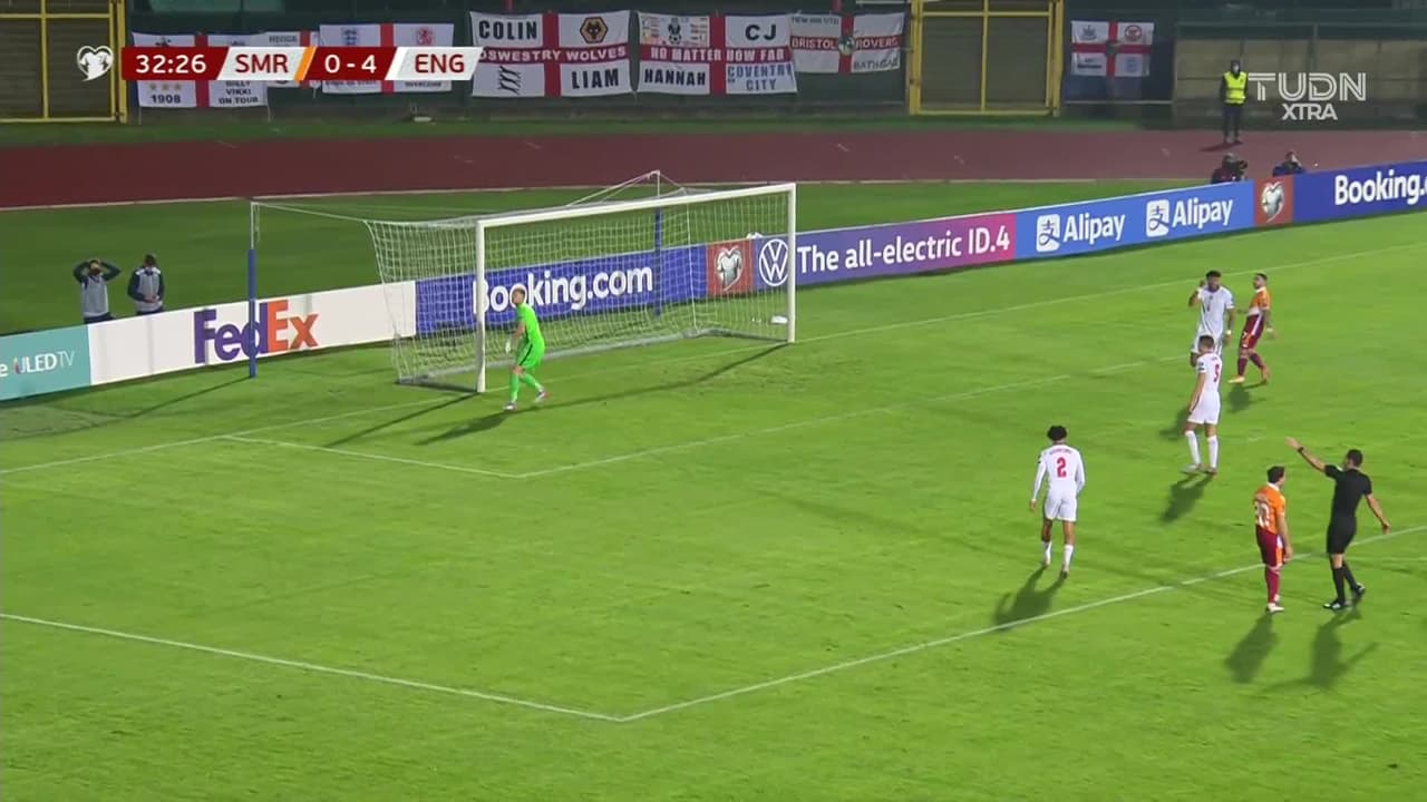 Tiro atajado. Nicola Nanni (San Marino) Disparo con la derecha desde fuera del área.