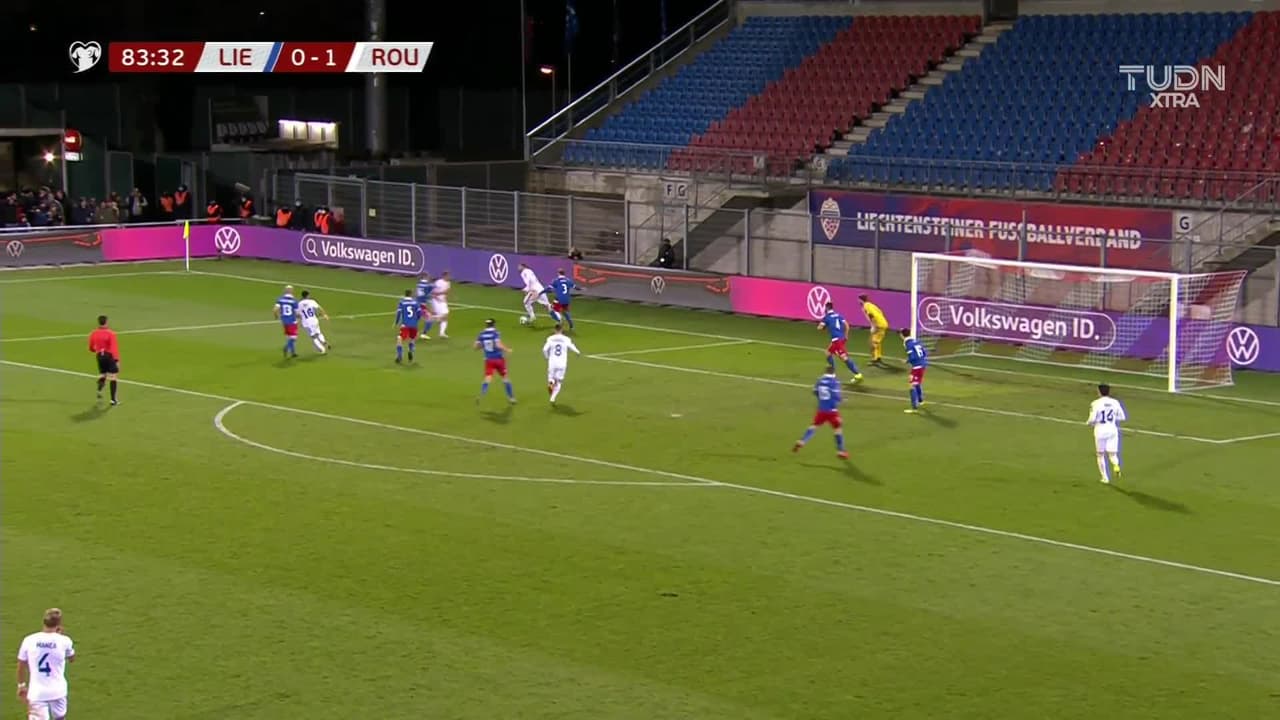 Tiro atajado Por arriba en el centro del arco. Nicusor Bancu (Rumanía) zurdazo desde el lado izquierdo dentro del área. Asistencia de Denis Alibec.
