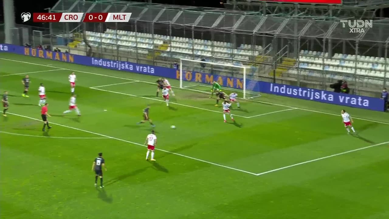 Tiro atajado raso al centro del arco. Nikola Vlasic (Croacia) Disparo con la derecha desde el centro del área. Asistencia de Josip Juranovic.