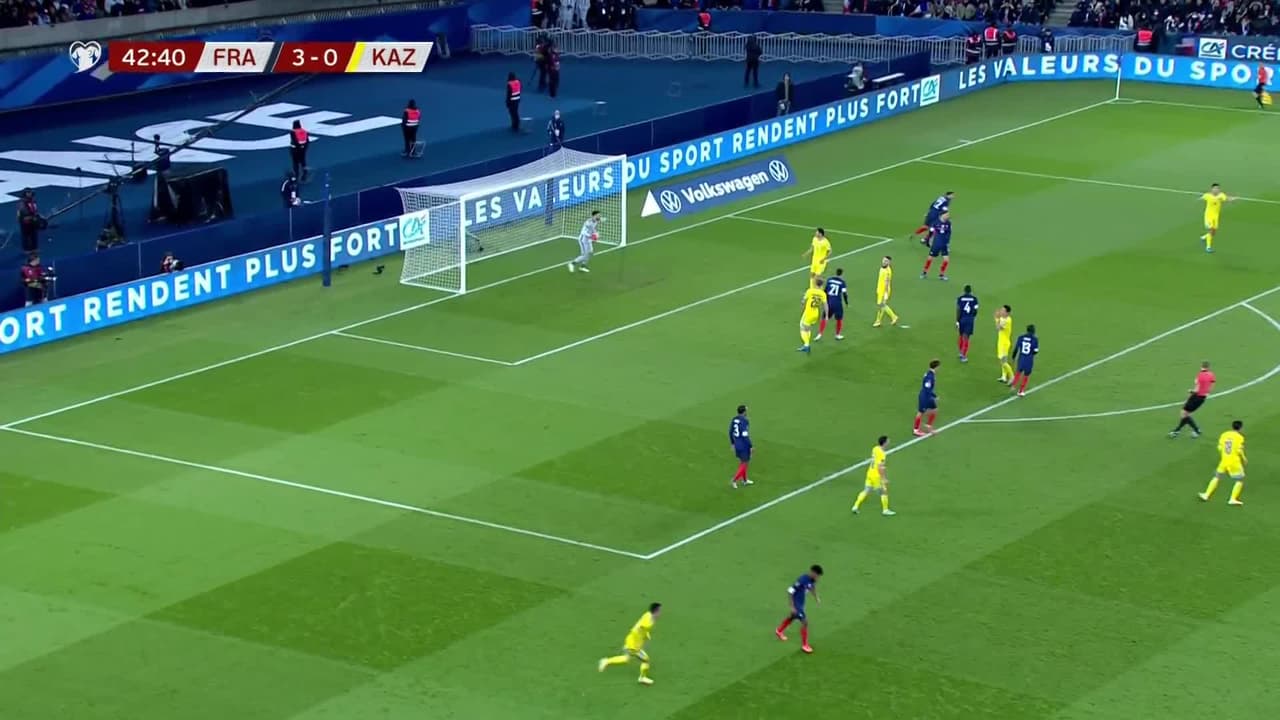 Tiro atajado raso al centro del arco. Oralkhan Omirtayev (Kazajistán) disparo de cabeza desde el centro del área. Asistencia de Islambek Kuat con un centro al área.