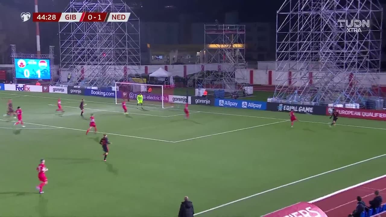 Tiro atajado por abajo a la izquierda. Owen Wijndal (Holanda) zurdazo desde el lado izquierdo dentro del área.