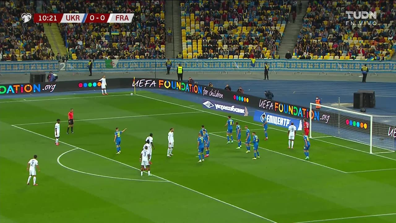 Tiro atajado raso al centro del arco. Paul Pogba (Francia) disparo de cabeza desde el centro del área. Asistencia de Antoine Griezmann con un centro al área.