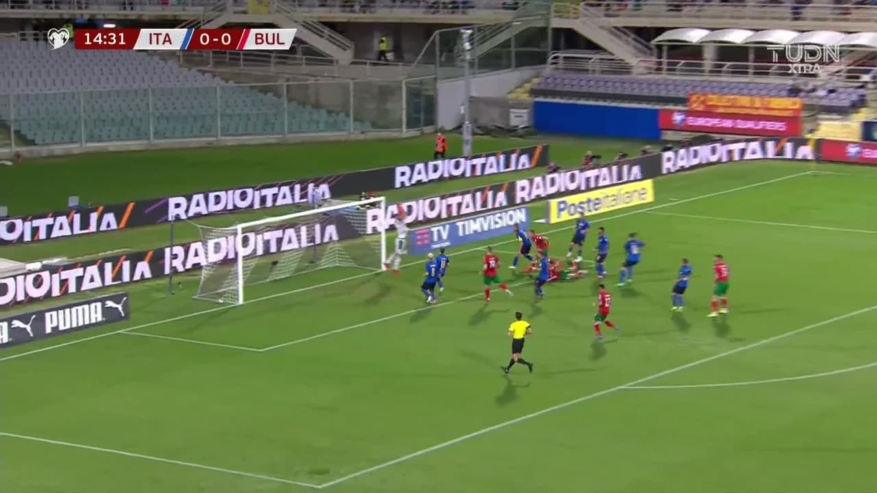 Remate parado alto y por el centro de la portería. Petko Hristov (Bulgaria) remate de cabeza desde el centro del área. Asistencia de Kiril Despodov.