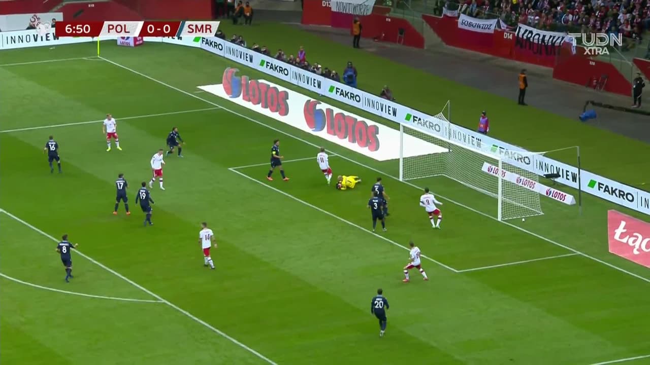Tiro atajado junto al lado derecho de la portería. Przemyslaw Placheta (Polonia) zurdazo desde el lado izquierdo dentro del área. Asistencia de Karol Linetty.