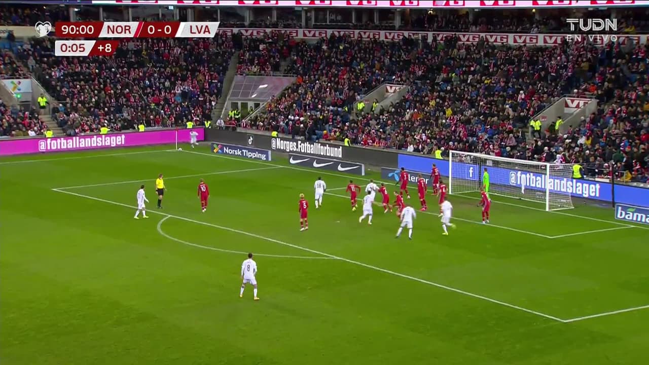 Tiro atajado raso al centro del arco. Raimonds Krollis (Letonia) disparo de cabeza desde el centro del área. Asistencia de Roberts Savalnieks con un centro al área.