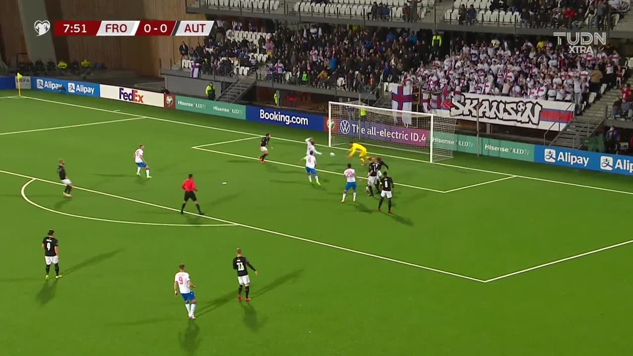 Tiro atajado. René Joensen (Islas Faroe) zurdazo desde el centro del área.