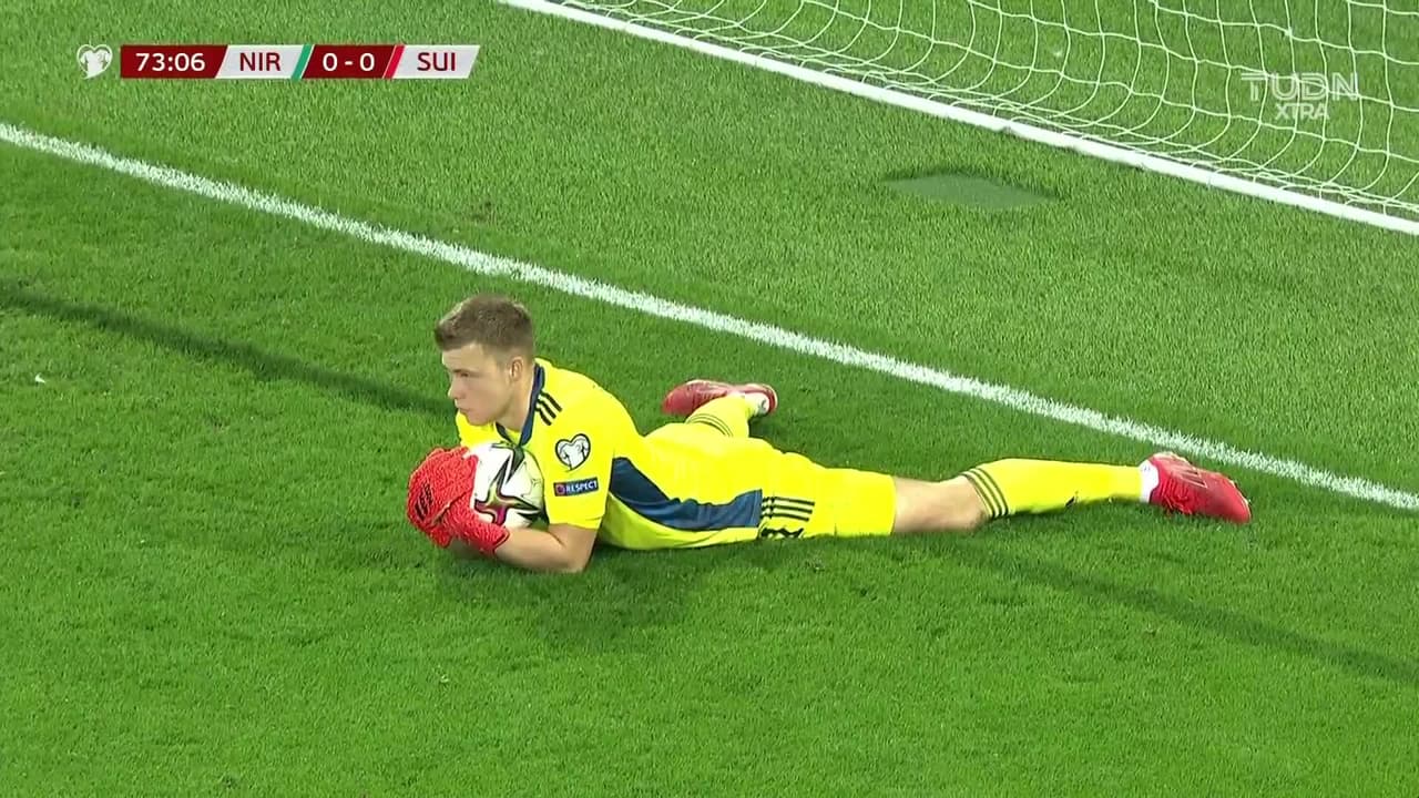 Tiro atajado junto al lado derecho de la portería. Ricardo Rodríguez (Suiza) zurdazo desde fuera del área.
