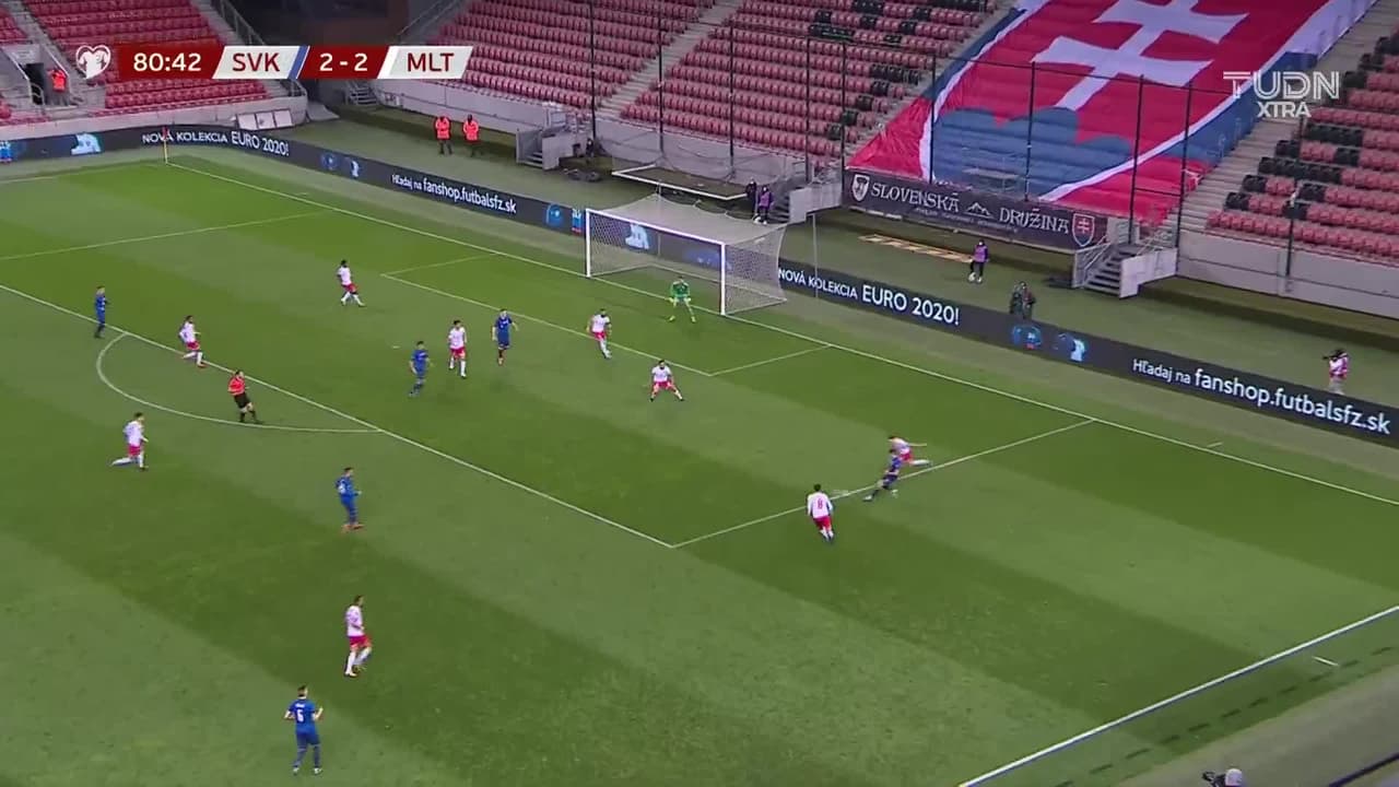 Tiro atajado junto al lado derecho de la portería. Robert Mak (Eslovaquia) Disparo con la derecha desde el lado derecho dentro del área. Asistencia de Martin Koscelnik.