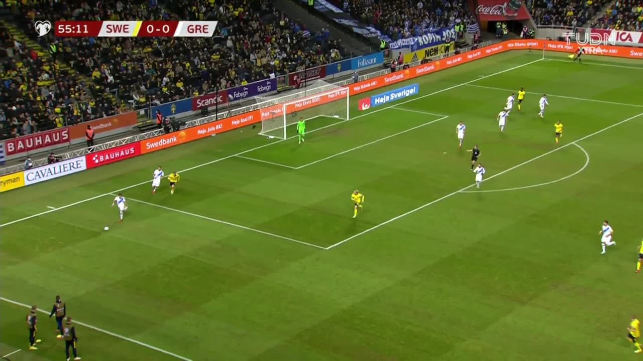 Tiro atajado por abajo a la izquierda. Robin Quaison (Suecia) Disparo con la derecha desde el centro del área.
