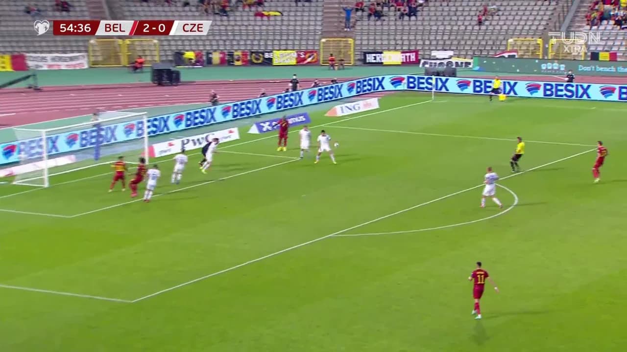 Remate parado. Romelu Lukaku (Bélgica) remate con la derecha desde el lado derecho del interior del área.