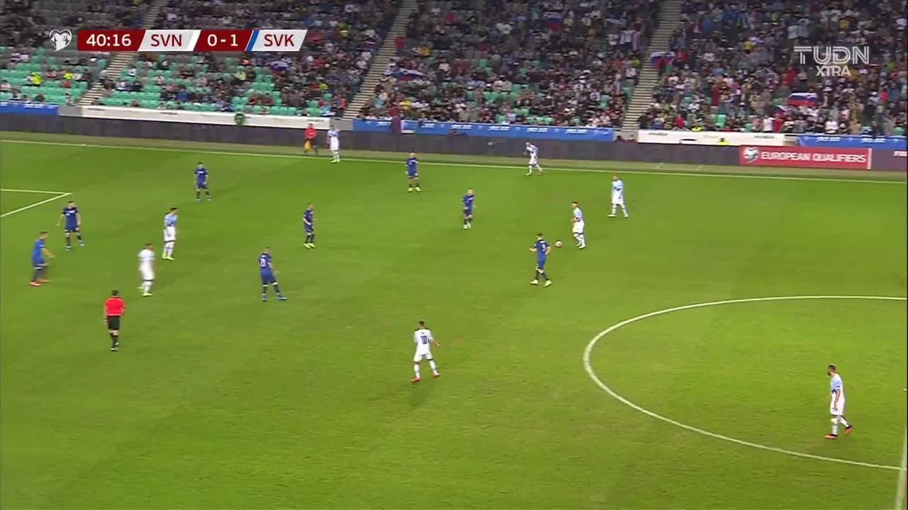 Remate parado bajo palos a rás de suelo. Sandi Lovric (Eslovenia) remate con la derecha desde el lado derecho del interior del área. Asistencia de Josip Ilicic.