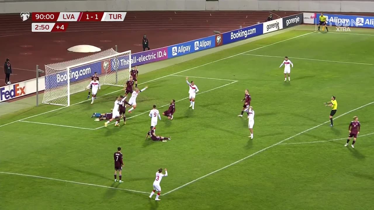 Tiro atajado. Serdar Dursun (Turquía) zurdazo desde el centro del área.