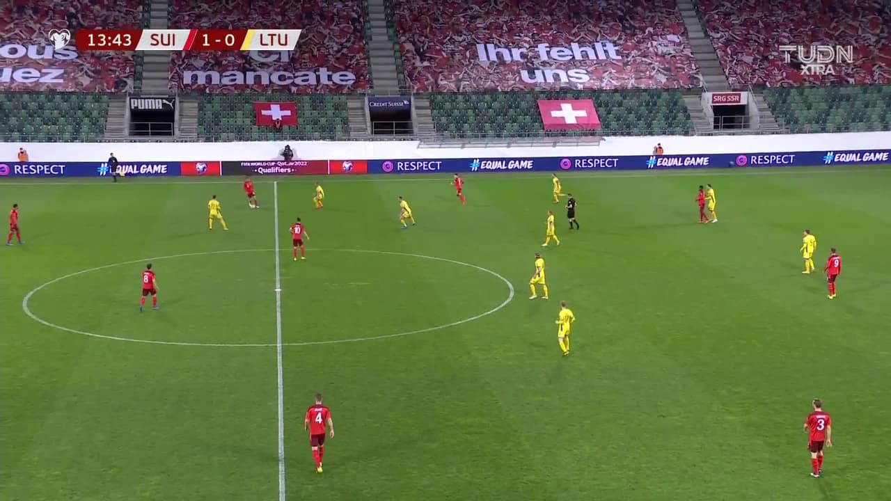 Tiro atajado. Silvan Widmer (Suiza) disparo de cabeza desde el centro del área.