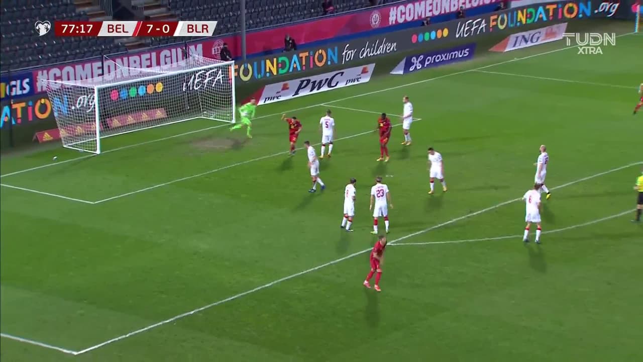 Tiro atajado junto al lado derecho de la portería. Thorgan Hazard (Bélgica) Disparo con la derecha desde fuera del área. Asistencia de Leandro Trossard.