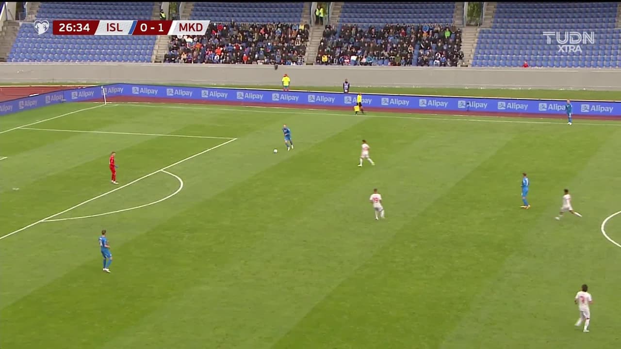 Tiro atajado raso al centro del arco. Tihomir Kostadinov (Macedonia) Disparo con la derecha desde fuera del área. Asistencia de Stefan Spirovski.