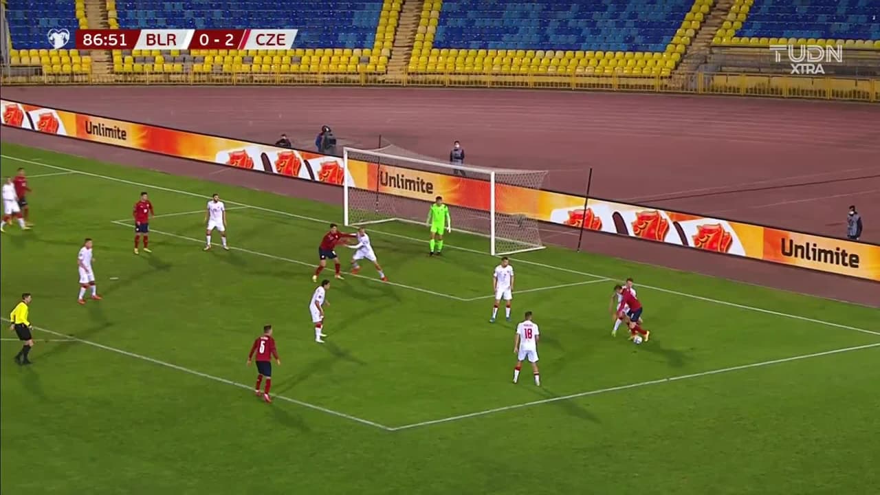 Tiro atajado. Tomás Wiesner (República Checa) Disparo con la derecha desde fuera del área.