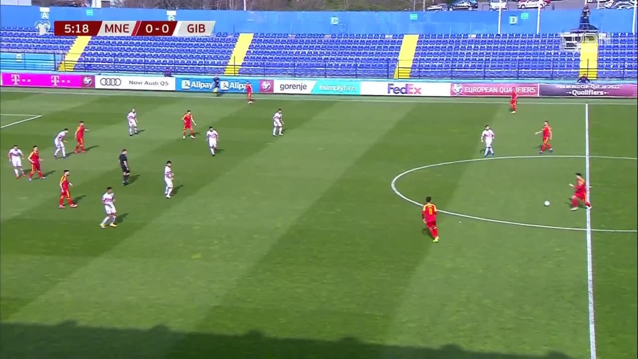 Tiro atajado raso al centro del arco. Uros Djurdjevic (Montenegro) disparo de cabeza desde el centro del área. Asistencia de Nebojsa Kosovic con un centro al área.