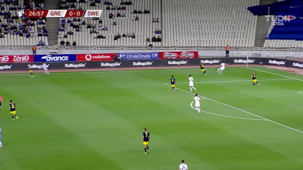 Tiro atajado al ángulo superior derecho. Vangelis Pavlidis (Grecia) Disparo con la derecha desde el centro del área. Asistencia de Anastasios Bakasetas pase largo.