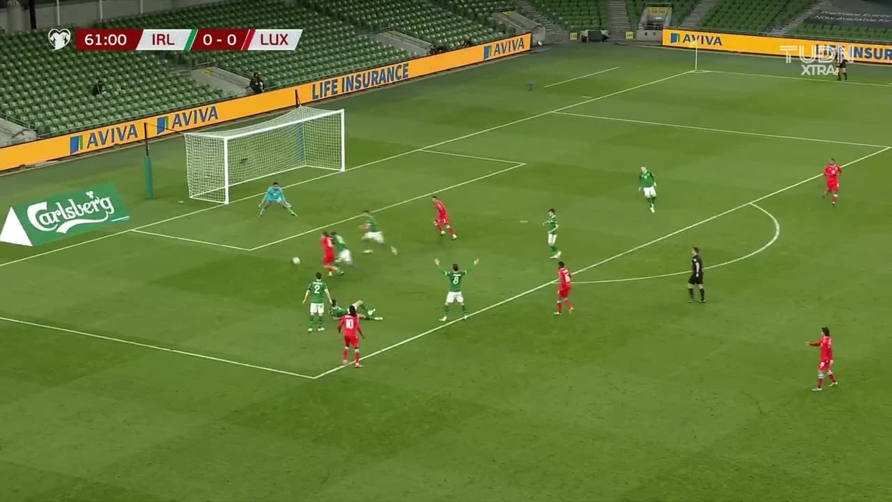 Tiro atajado raso al centro del arco. Vincent Thill (Luxemburgo) zurdazo desde el centro del área.