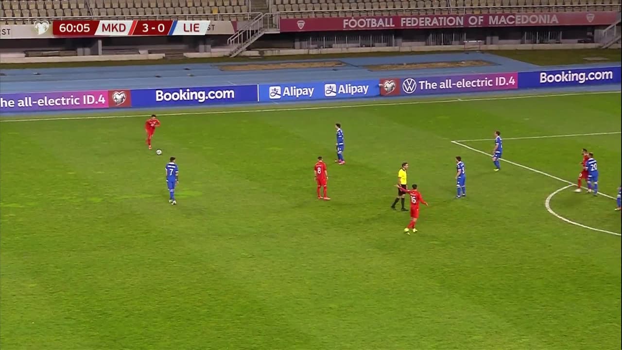 Tiro atajado raso al centro del arco. Visar Musliu (Macedonia) disparo de cabeza desde el centro del área. Asistencia de Ezgjan Alioski pase largo.