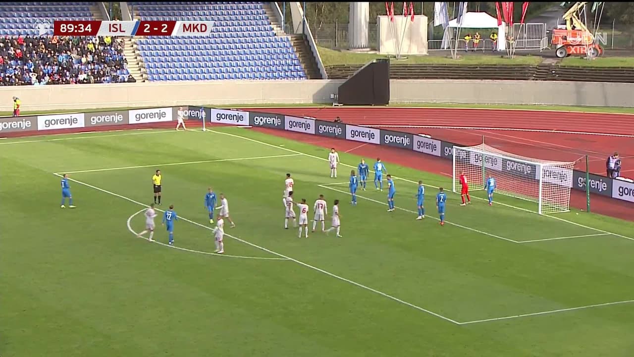Remate parado alto y por el centro de la portería. Visar Musliu (ARY de Macedonia) remate de cabeza desde el centro del área. Asistencia de Ezgjan Alioski con un centro al área.