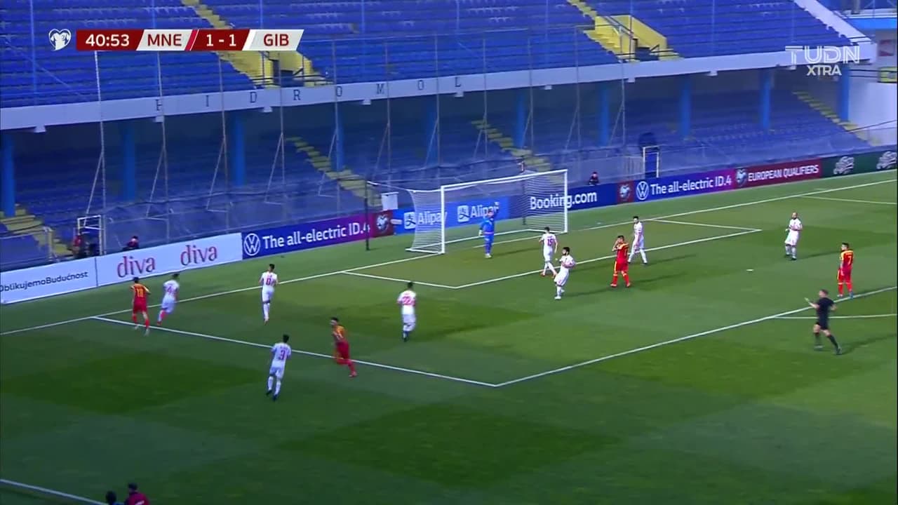 Tiro atajado. Vladimir Jovovic (Montenegro) Disparo con la derecha desde fuera del área.