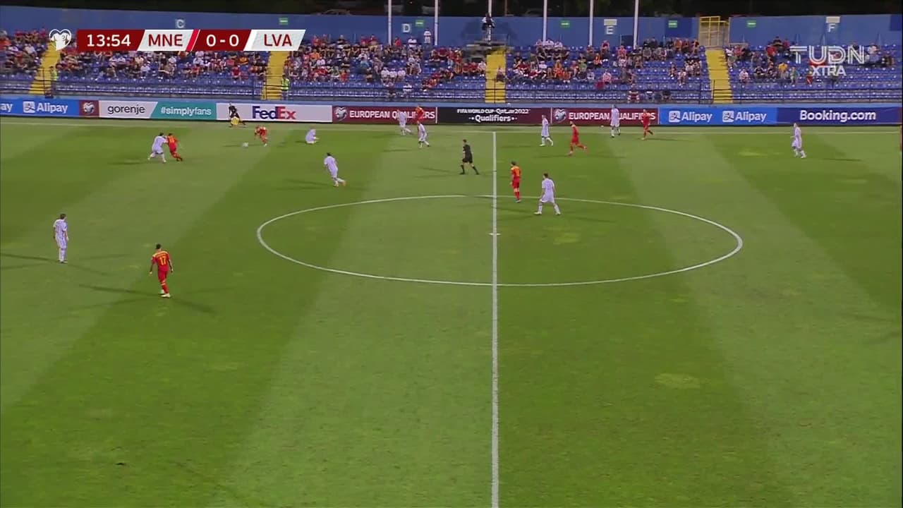 Tiro atajado. Vladislavs Gutkovskis (Letonia) Disparo con la derecha desde fuera del área.