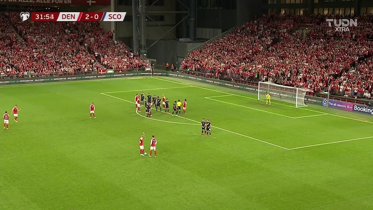 ¡TIRO ATAJADO! disparo por Yussuf Poulsen.