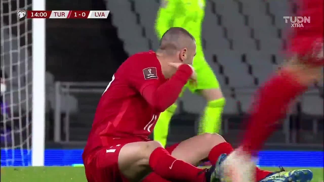 Tiro atajado. Yusuf Yazici (Turquía) zurdazo desde fuera del área.