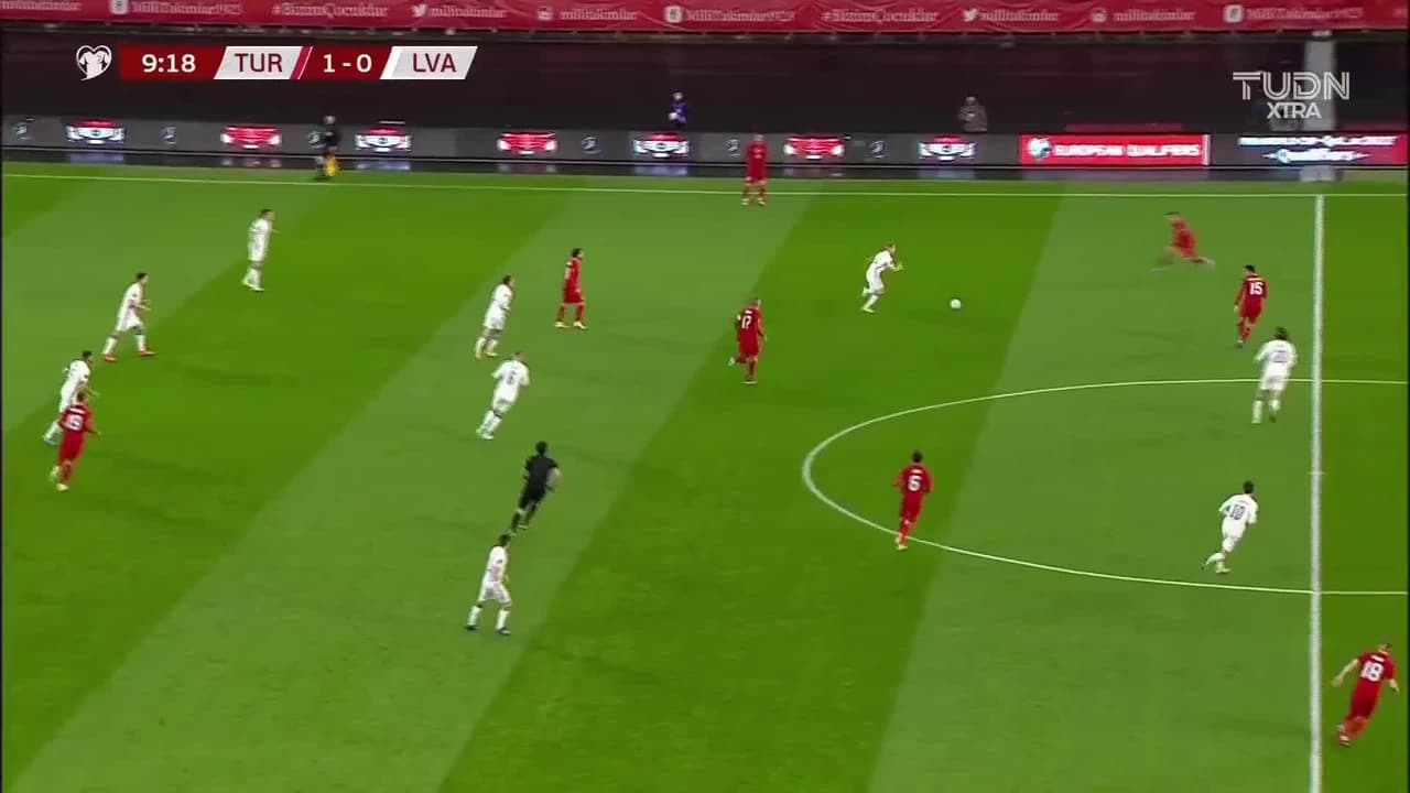 Tiro atajado junto al lado derecho de la portería. Yusuf Yazici (Turquía) zurdazo desde el lado derecho dentro del área.