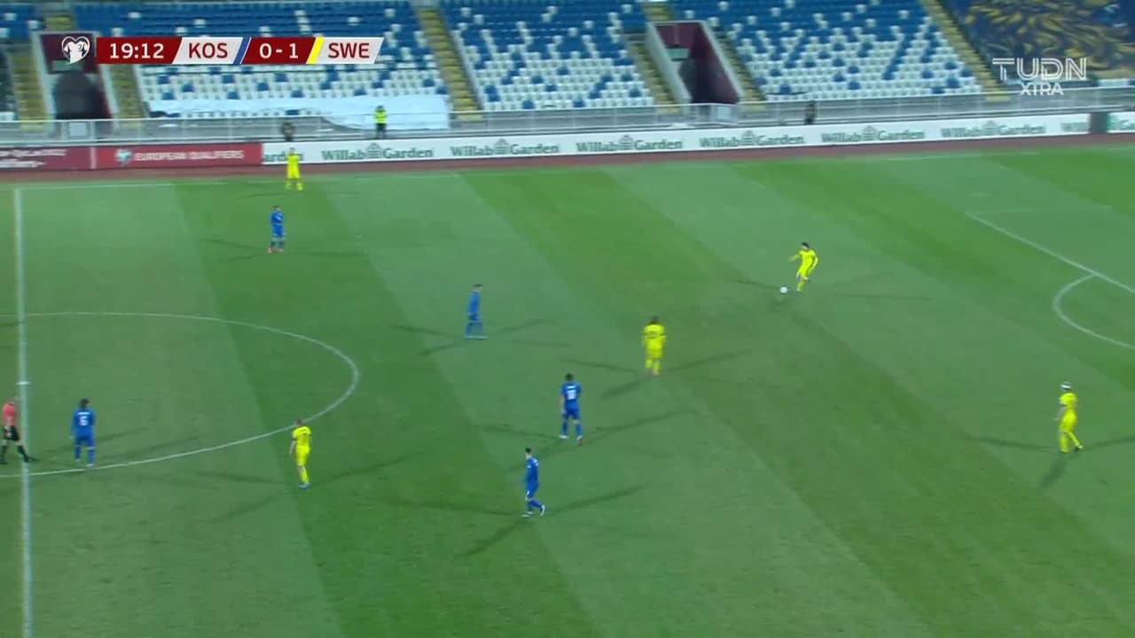 Tiro atajado Por arriba en el centro del arco. Zlatan Ibrahimovic (Suecia) disparo de cabeza desde fuera del área. Asistencia de Carl Mikael Lustig pase largo.