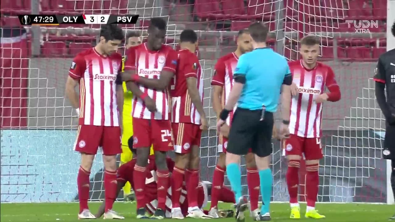 Eran Zahavi (PSV Eindhoven) remata palo| Disparo con la derecha desde fuera del área de tiro libre directo.