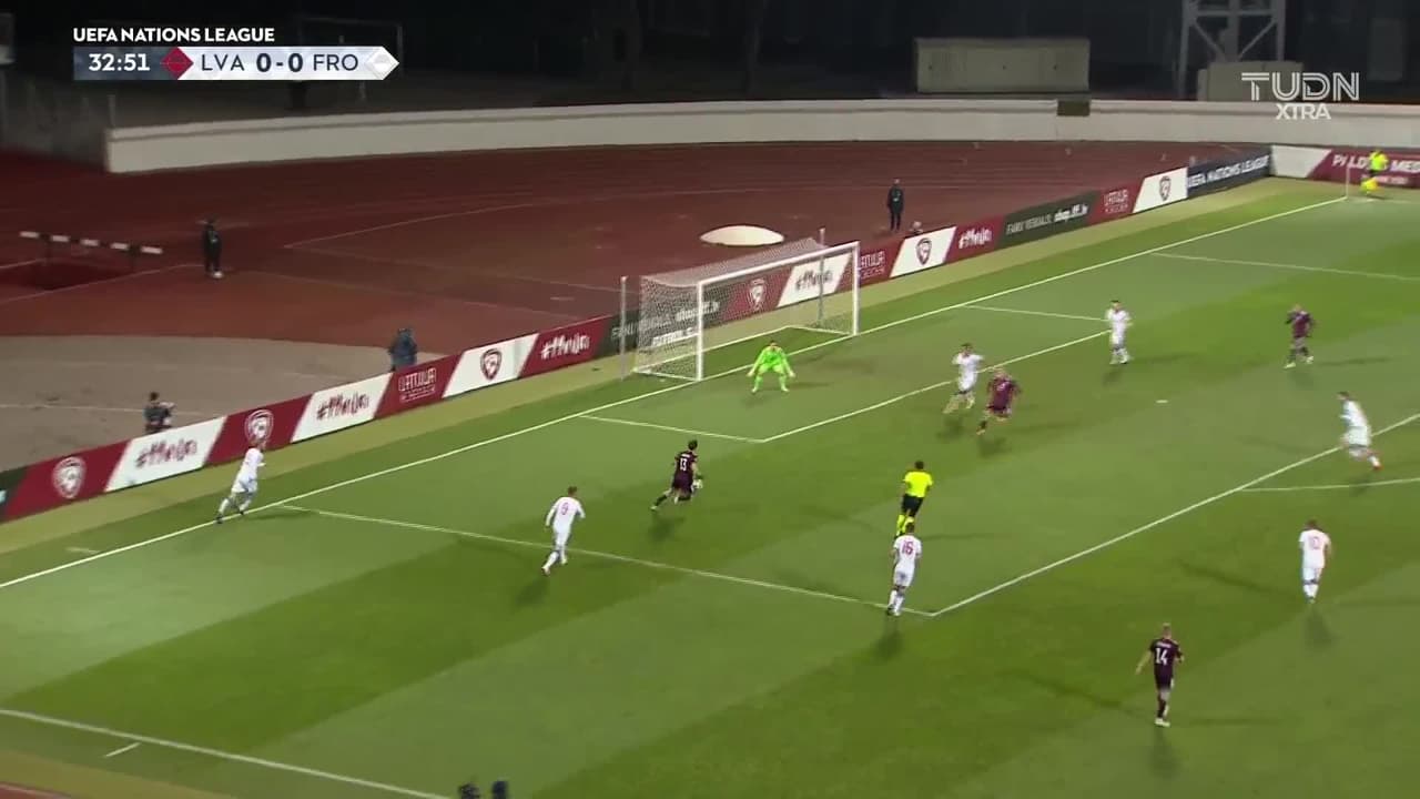 Raivis Andris Jurkovskis (Letonia) remata al poste izquierdo| Disparo con la derecha desde el lado izquierdo dentro del área. Asistencia de Janis Ikaunieks.