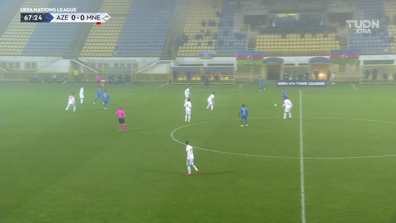Stevan Jovetic (Montenegro) remata al travesaño| Disparo con la derecha desde más de 30 metros. Asistencia de Aleksandar Boljevic tras un contragolpe.