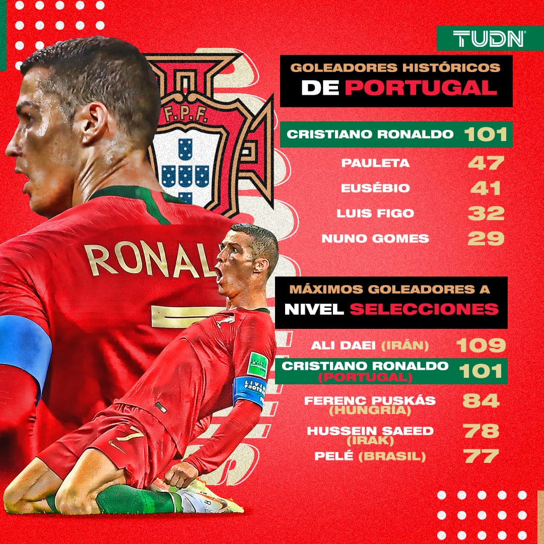 Por si fuera poco, Ali Daei de Irán es el único que queda en el horizonte de Cristiano Ronaldo en cuanto a los máximos goleadores a nivel de selecciones, solo ocho tantos más que el portugués.