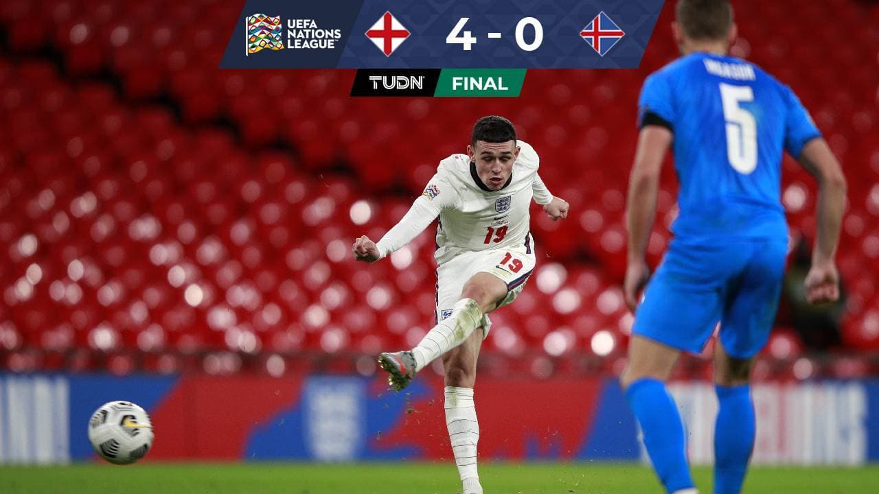La selección inglesa cerró su participación en la Nations League con triunfo 4-0 sobre Islandia, con doblete de Phil Foden, quien se estrenó como goleador en el equipo de la rosa. Los dirigidos por Southgate llegaron a 10 puntos y maquillaron el fracaso de su eliminación.