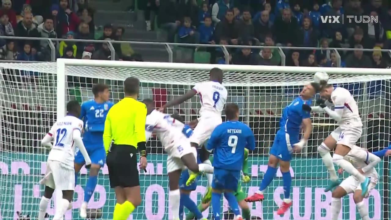 La madera repelió el balón, pero acabó golpeando en la espalda de Vicario para poner el 0-2. Italia estaba contra las cuerdas en casa, en San Siro. Francia era líder.